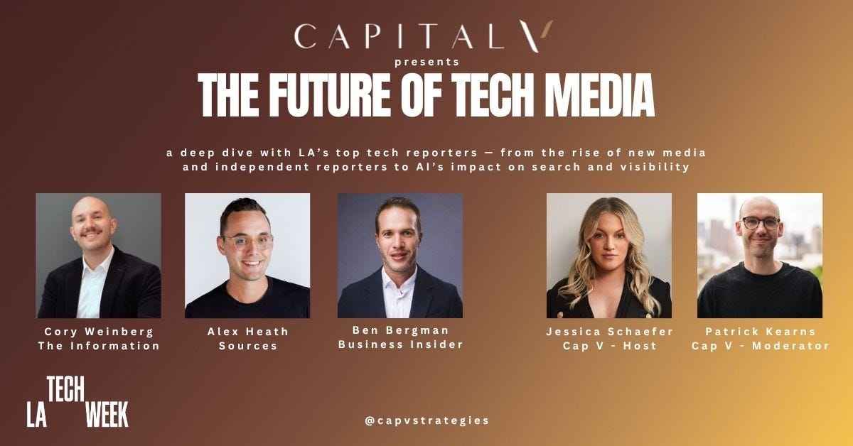 If you’ll be in Los Angeles on October 16th, I’ll be on a panel about the future of tech media hosted by Capital V in Venice. The RSVP link is here. If you want to come, just ping me and I’ll ensure you can attend.