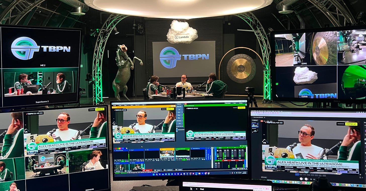 Thanks to John Coogan and Jordi Hays for having me live in the TBPN Ultradome earlier today. We talked about how I approach scoops, using AI, the state of tech media, prediction markets, and a lot more.
